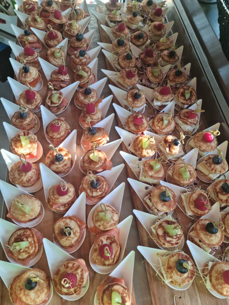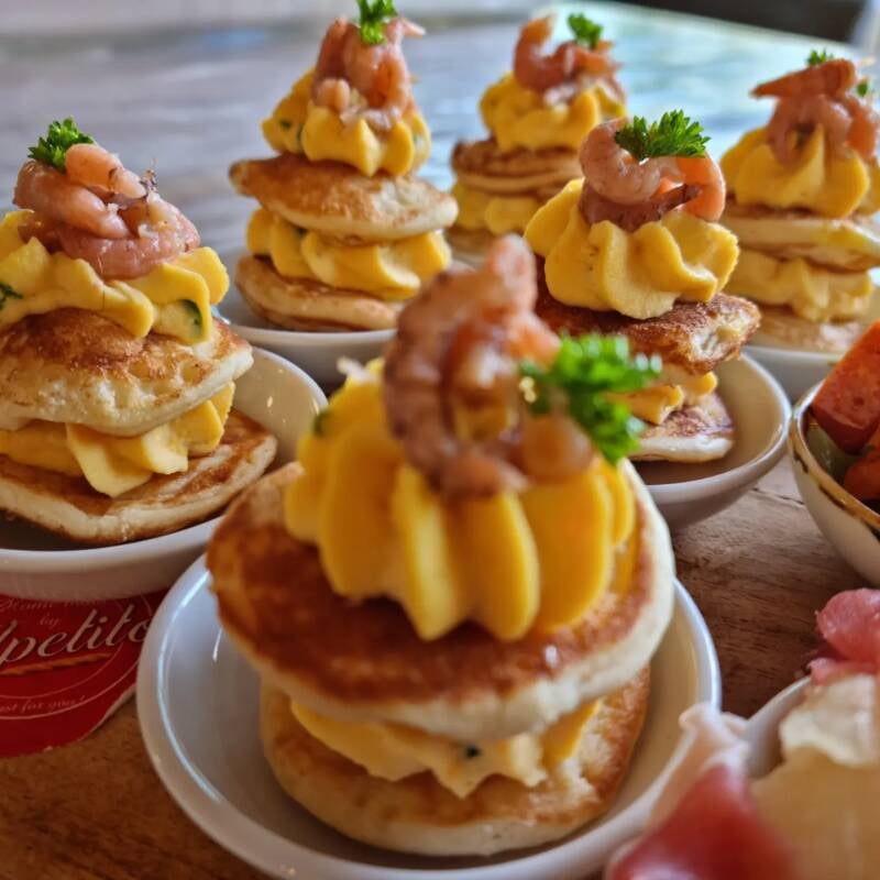 - Gevuld poffertje met gerookte zalm